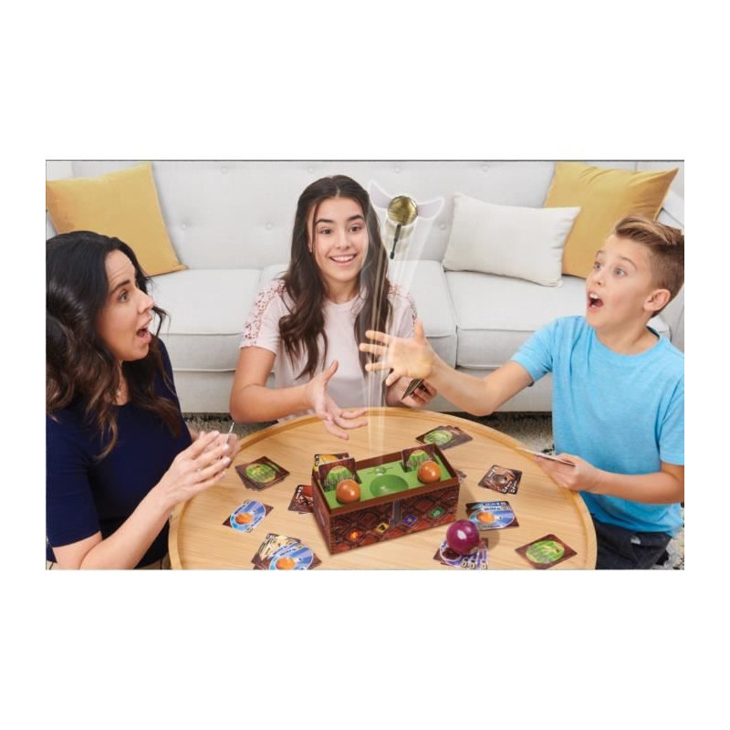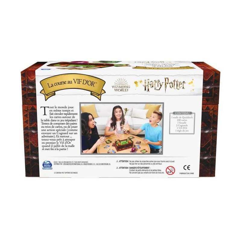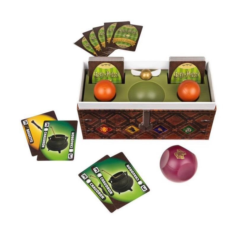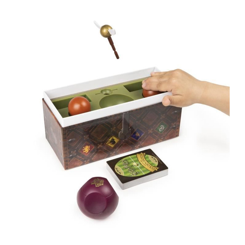 Un jeu de rapidité et d'action trépidant, qui s'articule autour d'une reproduction fidele du célebre coffre de Quidditch permettant de se plonger dans l'univers Harry Potter. But du jeu : etre celui avec ayant cumulé le plus de points apres l'envol du Vif D'Or. Le principe : un mélange de jeu de cartes et de jeu d'action, où réflexe et rapidité sont indispensables Tout le monde joue en meme temps, sur un rythme