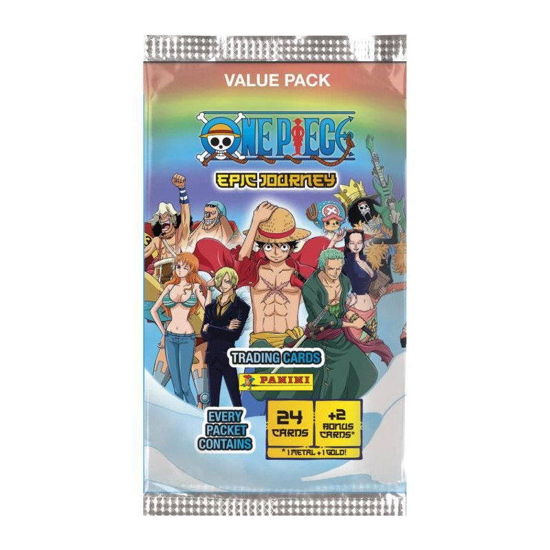 La collection comporte 225 cartes dont 75 spéciales (cartes dorées, mates ou brillantes). Ces cartes mettent en scene la totalité des membres de l'Équipage au Chapeau de paille. Cette pochette contient 24 cartes* + 2 cartes BONUS !