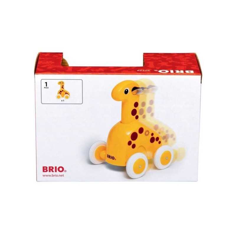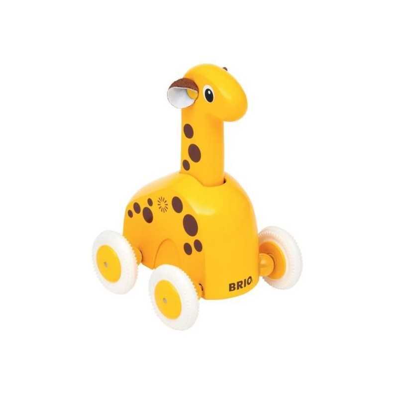 Regardez la girafe Push & Go filer. Appuyez sur la tete (Push), lâchez-la et voila que la girafe file (Go) ! Ce jouet dispose d'un systeme de rétro-friction facile a utiliser. Des 12 mois.