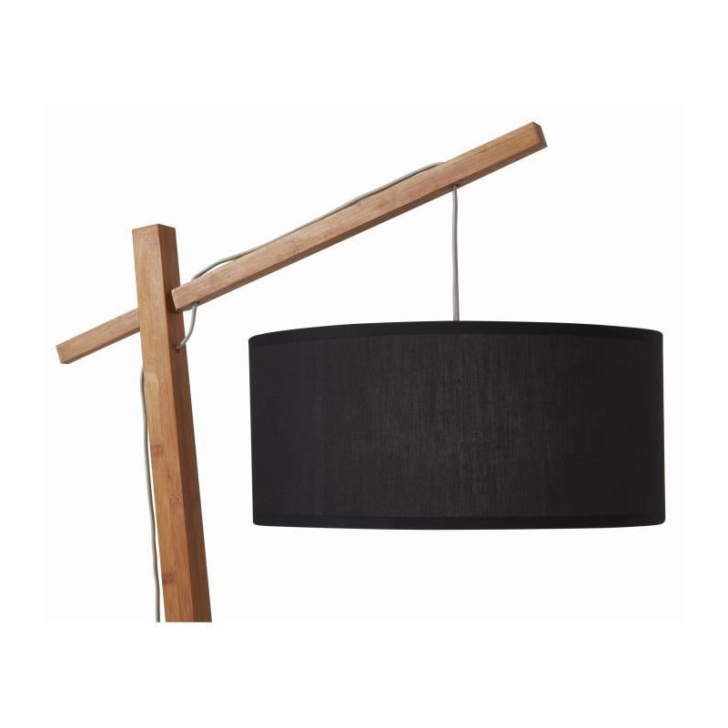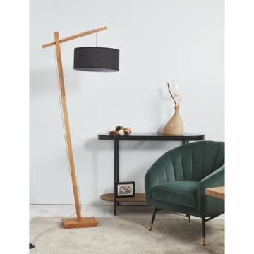 Lampadaire pieds en bois - Abat jour en tissu Noir - L 72 x P 47 x H 176 cm - MILANO