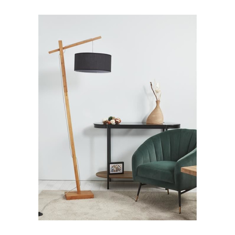 MILANO Lampadaire - Pieds en bois et abat jour en tissu Noir - L 72 x P 47 x H 176 cm