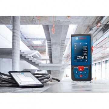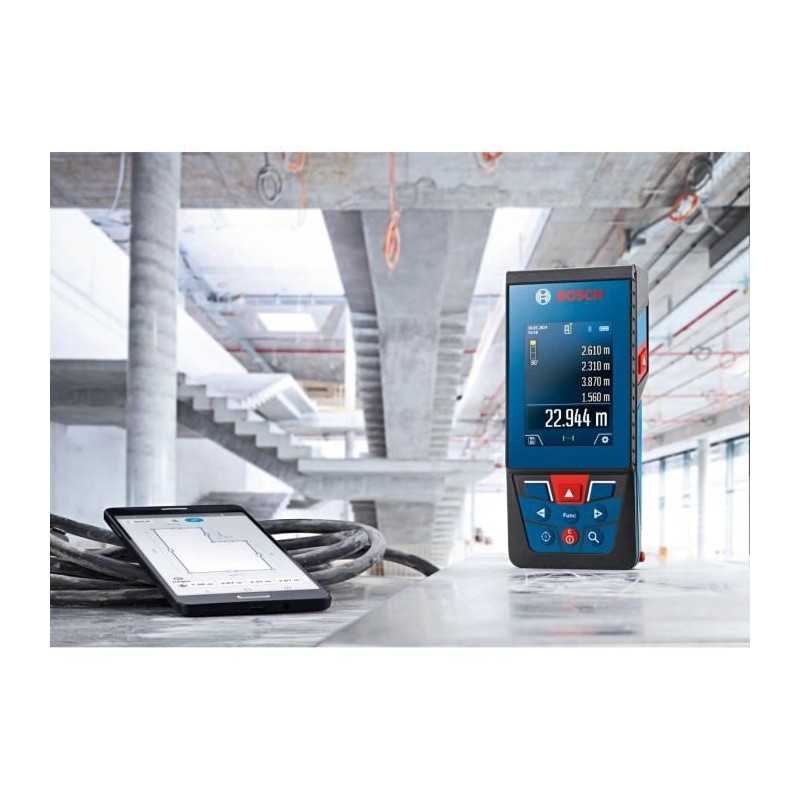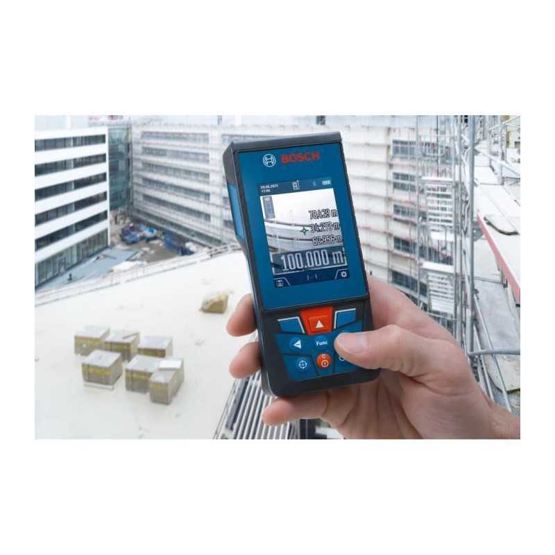 Télémetre extérieur avec fonction zoom pour des mesures précises jusqu'a 100m de distance. L'image de la caméra et les valeurs de mesure sont bien visibles sur le grand écran couleur IPS de 2,8" a contraste élevé avec affichage vertical et horizontal. Fonction Bluetooth (partage de données). Protection IP54.