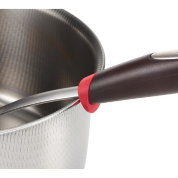 Louche en inox + poignée en plastique de coloris noir et rouge. Idéal pour servir les préparations liquides. Compatible au lave-vaisselle.