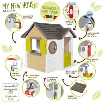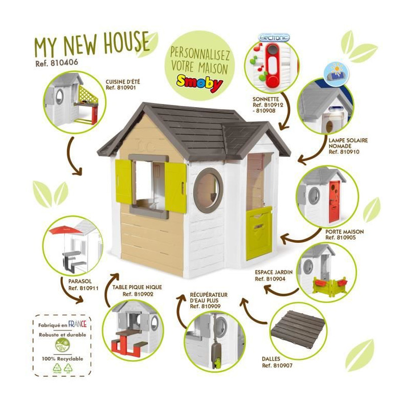 SMOBY Maison My New House - 1 portillon + 2 fenetres + 2 hublots - Anti-UV - 118x132x135 cm
