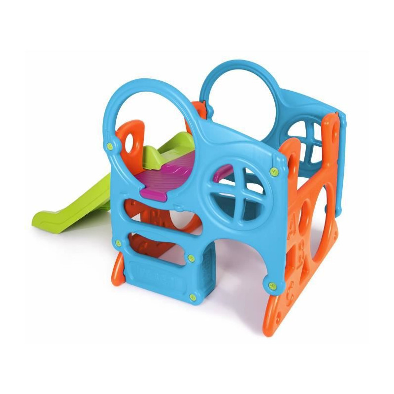 Offre a votre enfant le choix de multiples activités telles que grimper, faire du toboggan ou passer a travers les cercles. Le toboggan se change aussi en escalier. Facile a construire. Les couleurs sont résistantes au soleil et aux changements de température.