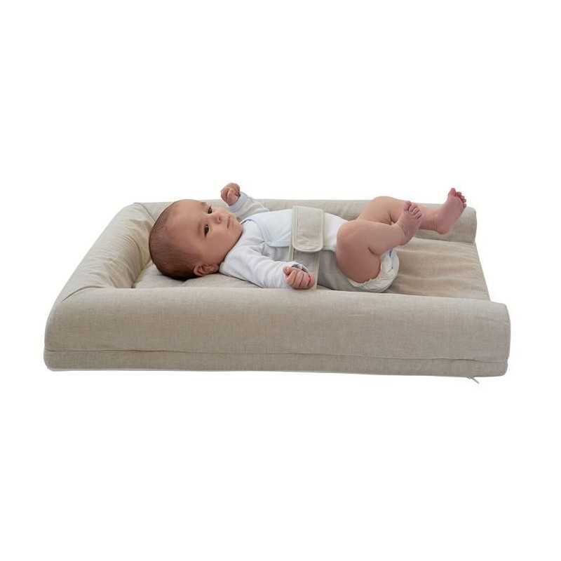 CANDIDE Matelas a langer Mat'Confort - Taupe - Bords rehaussés - Ceinture de maintien et dessous antidérapant - Association de mousse et de billes pour caler bébé - Housse en tissu - Mixte - Des la naissance - Livré a l'unité.