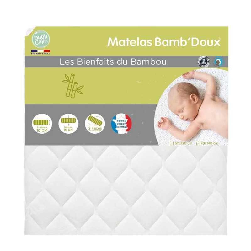 BABYCALIN Matelas de lit 18 Kg/m3 déhoussable Viscose bambou 60x120x10cm