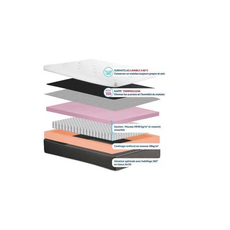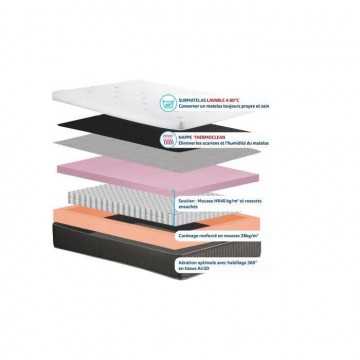 Avec le matelas ThermoReve offrez-vous un confort sans faille et une hygiene ultime du matelas pour mieux dormir et booster votre énergie des le matin. Haut de gamme de la collection, il est conçu avec un surmatelas coconning dézippable et lavable a 60° et bénéficie aussi de la technologie ThermoClean® : une innovation brevetée qui vous permettra de prendre soin de votre literie pour longtemps sans traitement chimiq