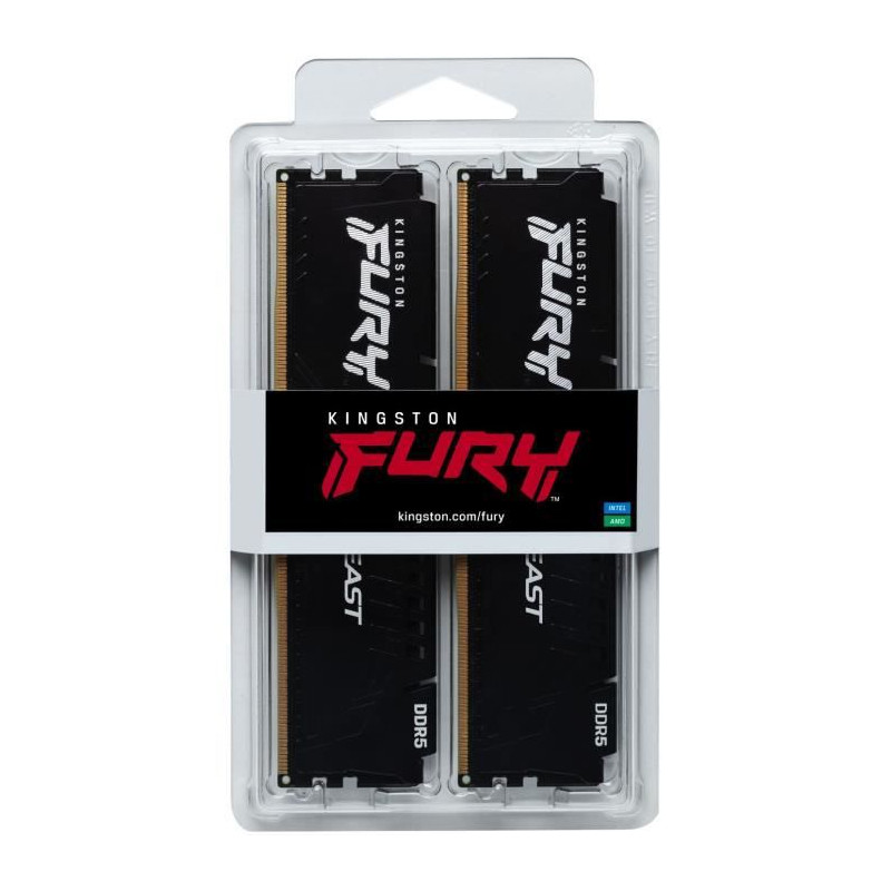 FURY(TM) Beast DDR5 integre la toute derniere technologie - Doubles sous-canaux 32 bits pour une efficacité accrue - Circuit intégré de gestion de l'énergie sur le module (PMIC) - Utilise Intel® XMP 3.0, une nouvelle spécification d'overclocking qui inclut deux profils personnalisables pour les vitesses et les timings.