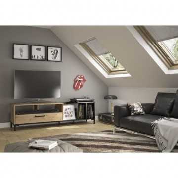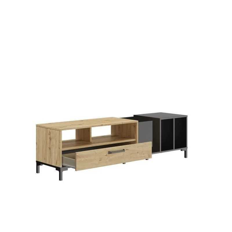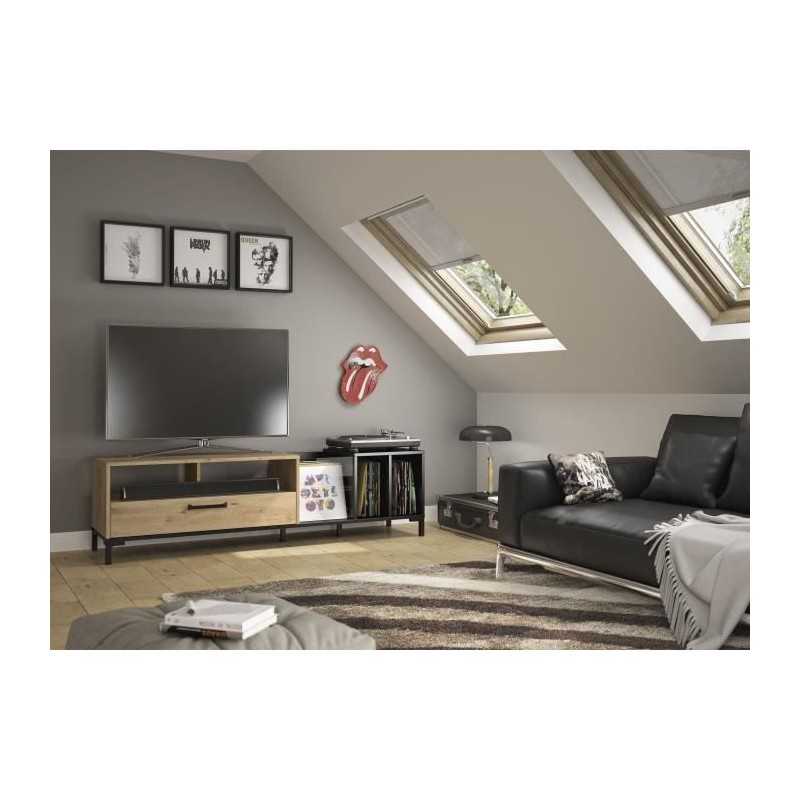 OXFORD Meuble TV décor noir et chene - Style industriel -...