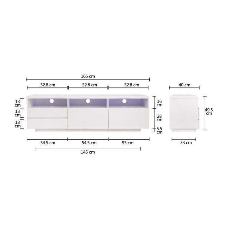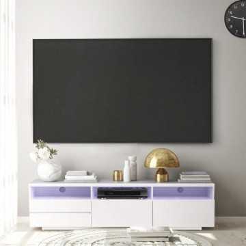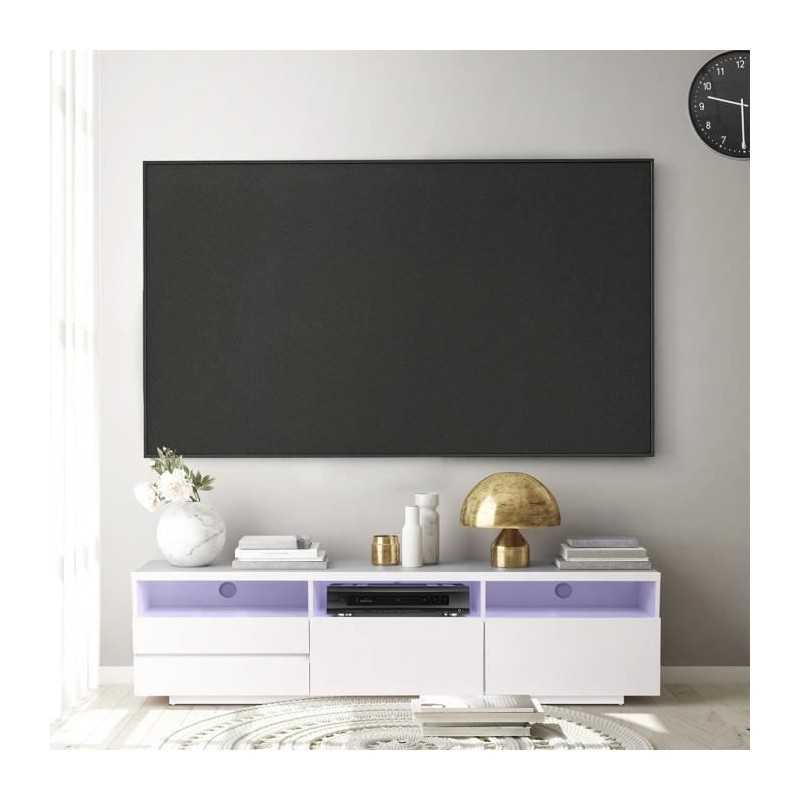 KORA Meuble TV contemporain blanc et noir brillant - L...