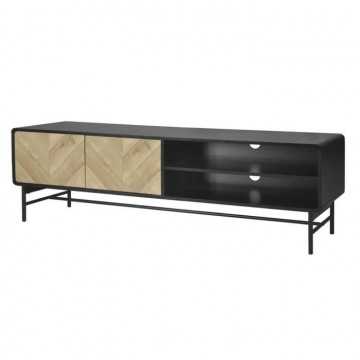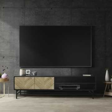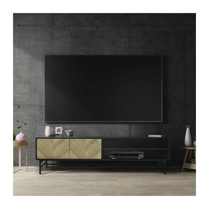 Meuble TV 2 portes - Bois et métal noir - L 180 x P 40 x H 52 - BROOKLYN