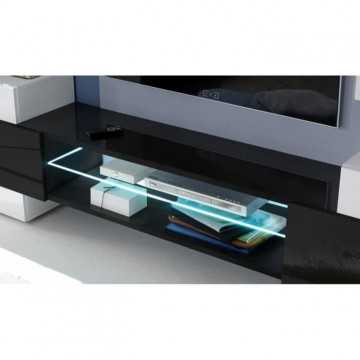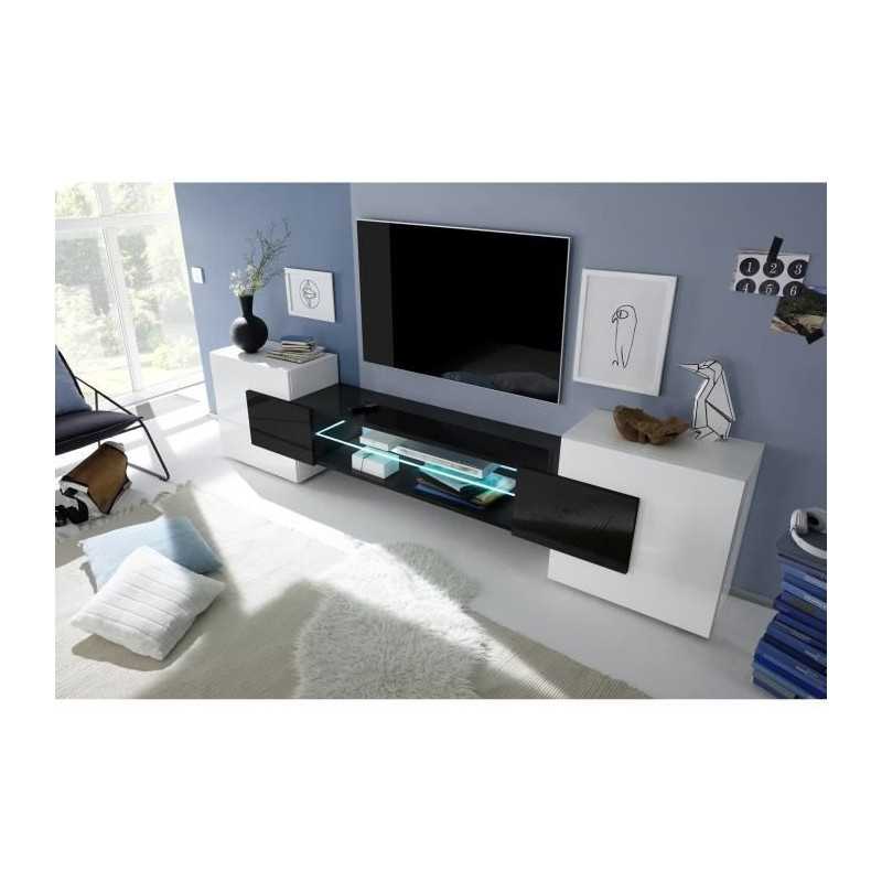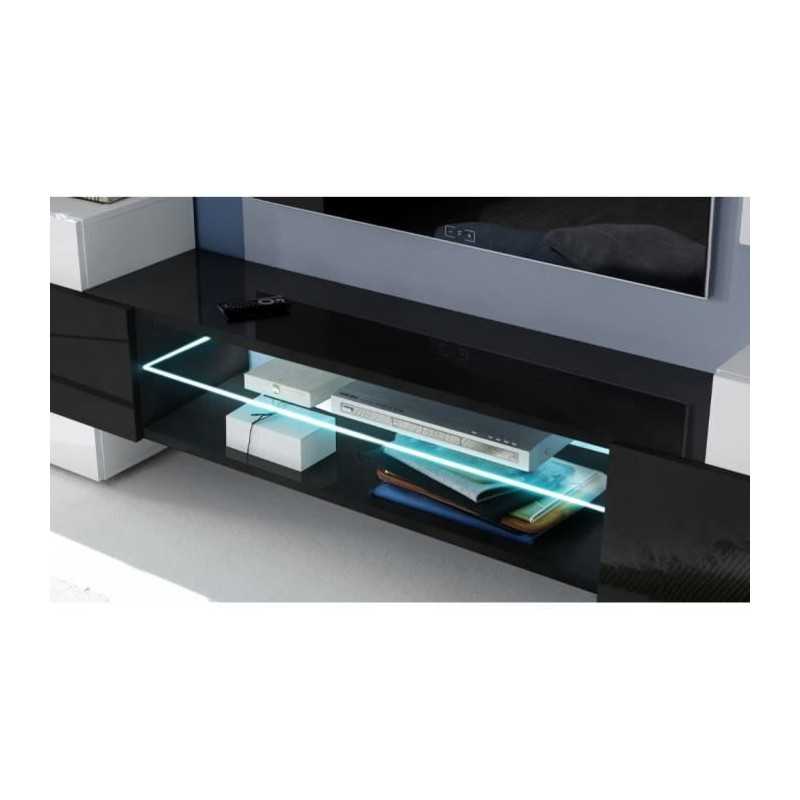 Meuble TV avec LED 2 portes - Blanc laqué brillant et noir - L 258 x P 37 x H 61 cm - ANCONA