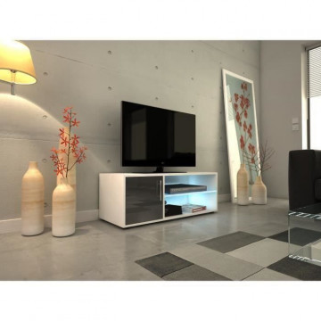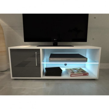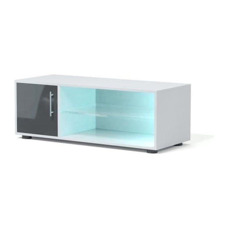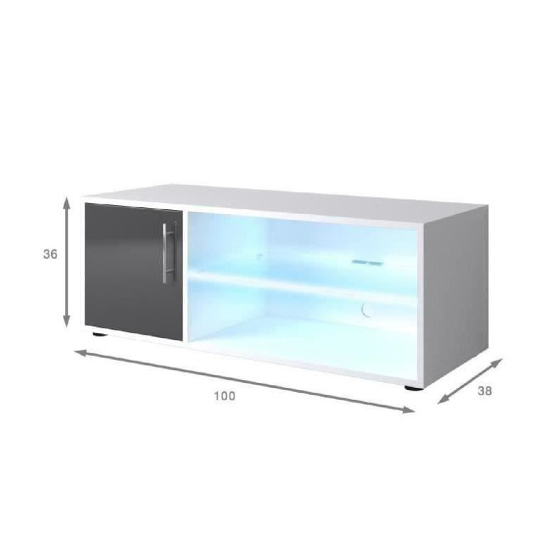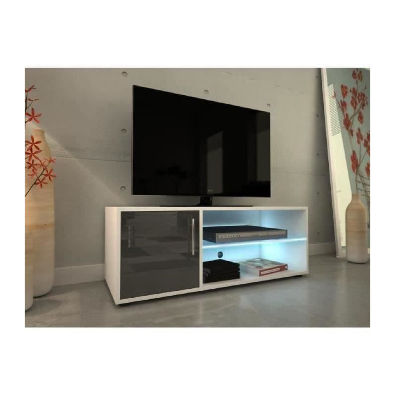 Le meuble TV KORA contemporain avec éclairage LED laqué gris - L 100 cm est une table TV ultra design et fonctionnelle, qui ajoute une touche de modernité à votre salon.