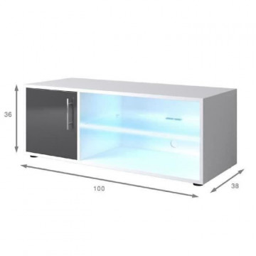KORA Meuble TV contemporain avec éclairage LED laqué gris - L 100 cm
