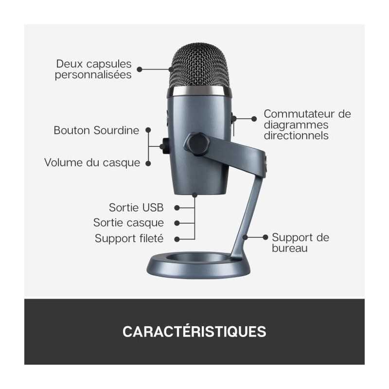 Microphone USB - Blue Yeti - Nano Premium pour Enregistrement, Streaming, Gaming, Podcast sur PC ou Mac - Gris