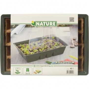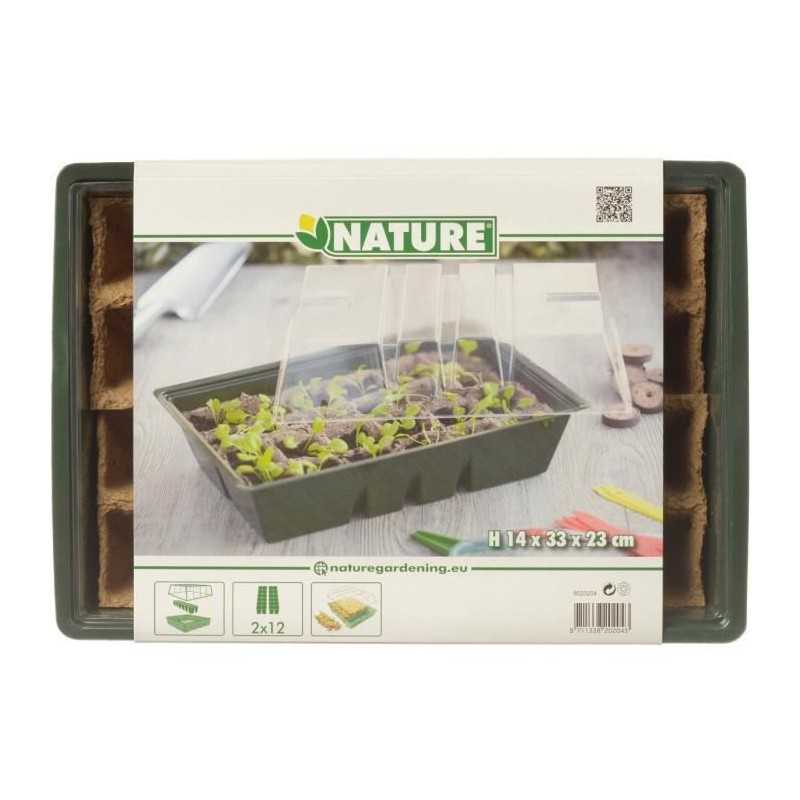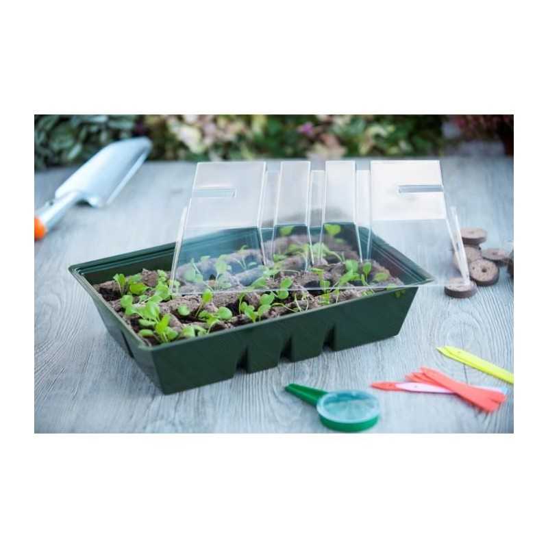 Mini-serre de culture - terrine, plateau tourbe 12 alvéoles (2x), couvercle - H14 x 33 x 23 cm