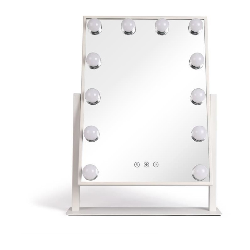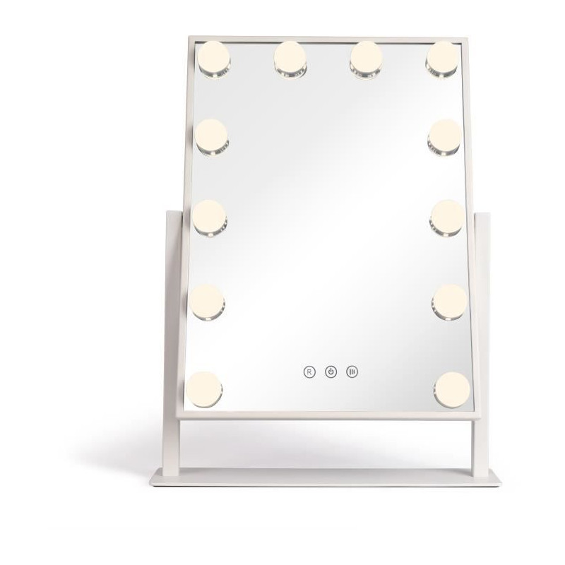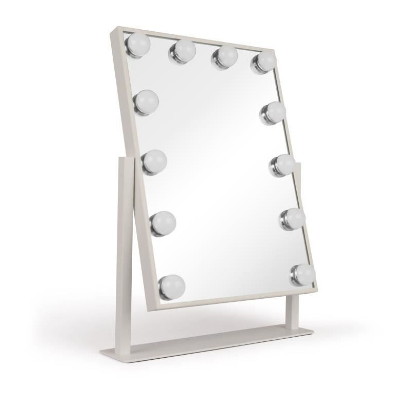 LIVOO DOS182 - Miroir maquillage Hollywood 36 x 47cm - Miroir lumineux rectangulaire sur pied - 3 éclairages - 12 LEDs