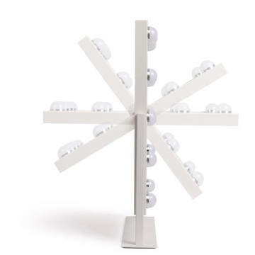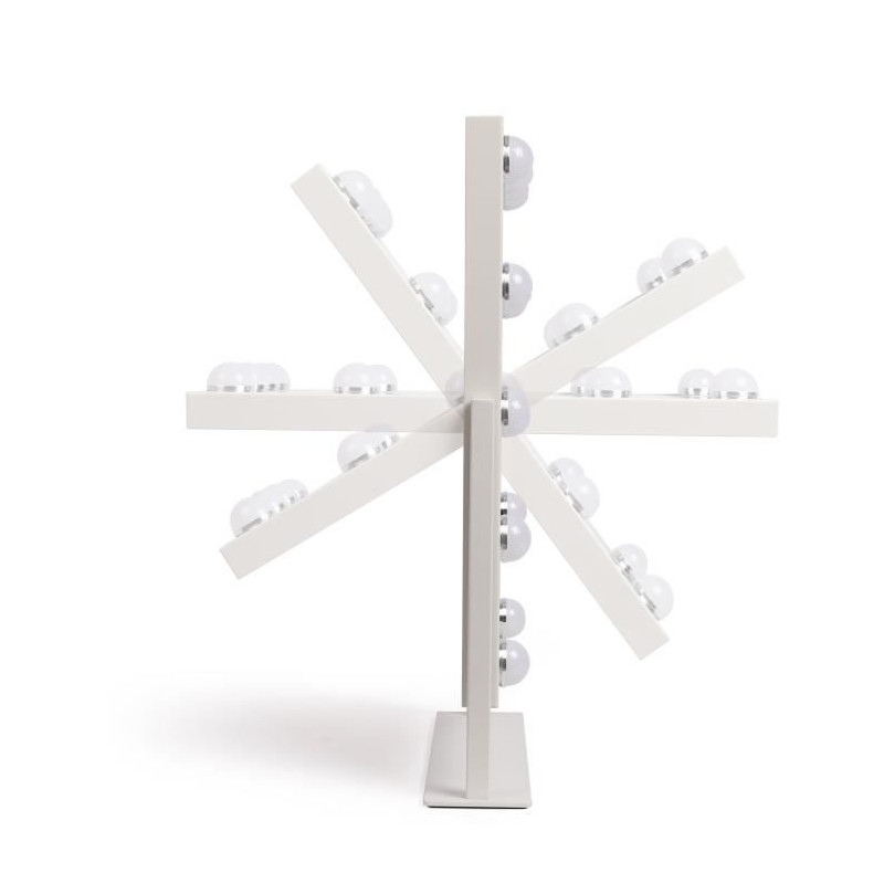 Miroir lumineux rectangulaire sur pied - 36 x 47 cm - Inclinable a 360°C - Eclairage par 12 LEDs - 3 éclairages différents : chaud/froid/neutre - Interrupteur ON/OFF tactile sur le miroir - Contrôle de l'intensité d'éclairage - Base métallique