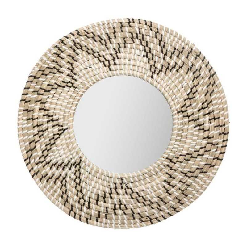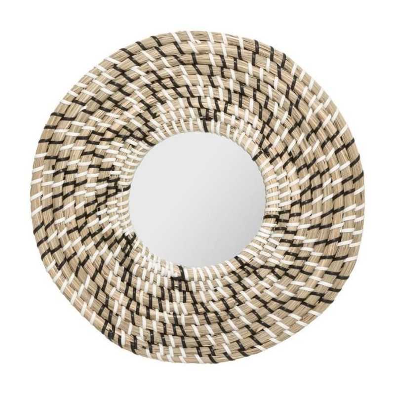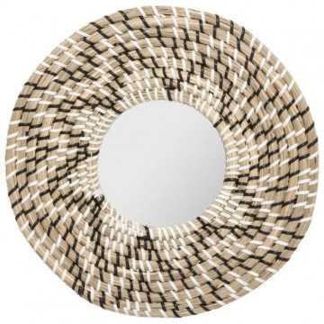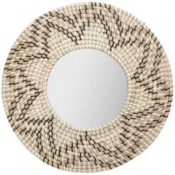 Miroir mural M4 - Forme rond - Cadre raphia - Naturel -...