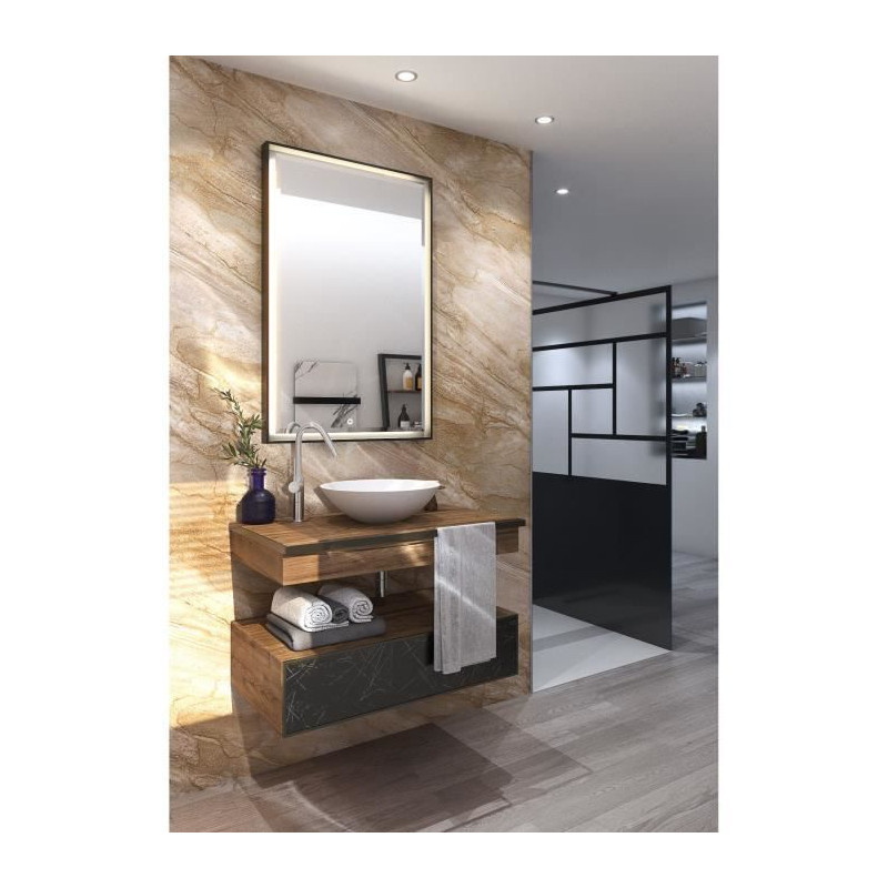 AURYS Miroir HARMONY 700*1200 - 4 mm Eclairage led frontale périphérique, sablage horizontale, interrupteur tactile, anti buée, cadre périphérique, finition noire