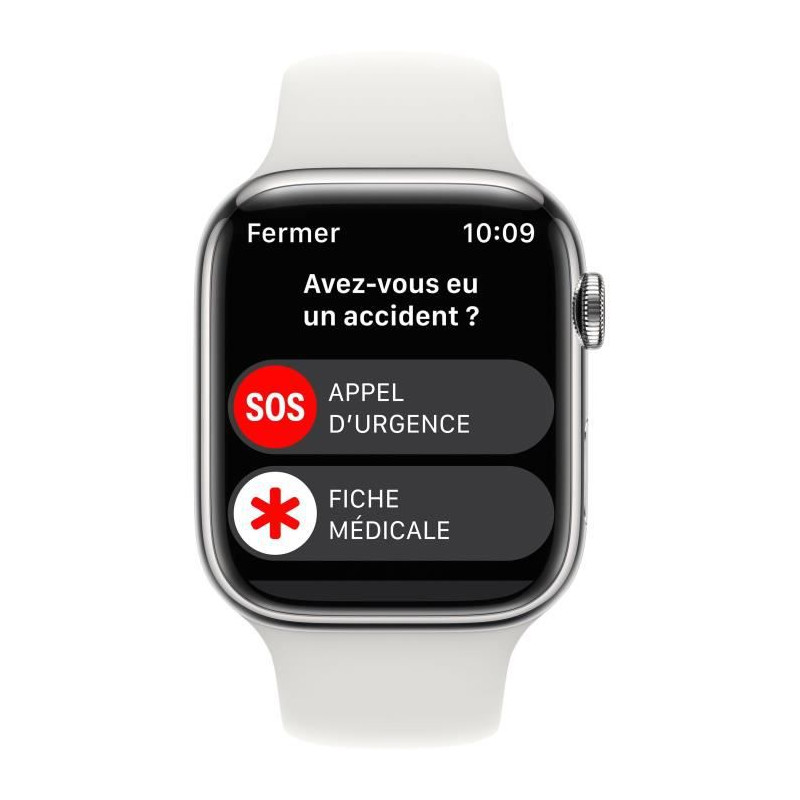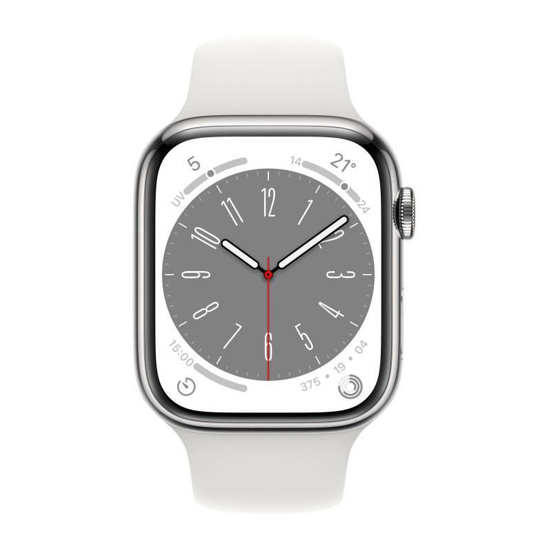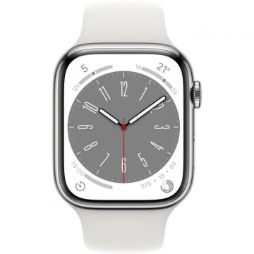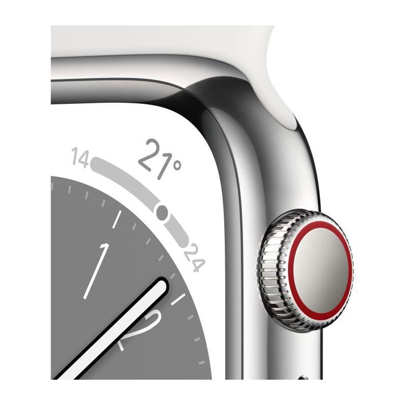 Apple Watch Series 8 GPS + Cellular - 45mm - Boîtier Silver Stainless Steel - Bracelet White Sport Band - Regular