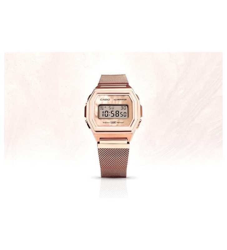 Montre en acier - CASIO - Maille milanaise - Rose gold