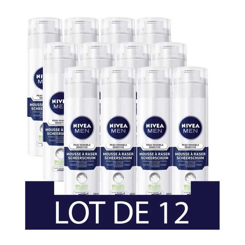 NIVEA FOR MEN Mousse a Raser peau sensible - 200ml - Lot de 12