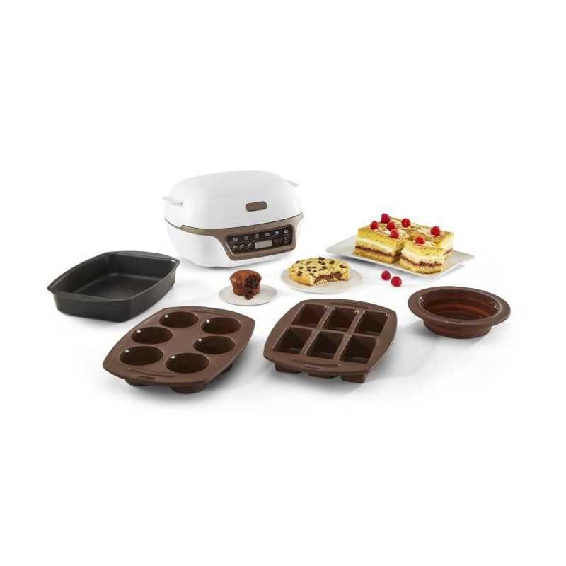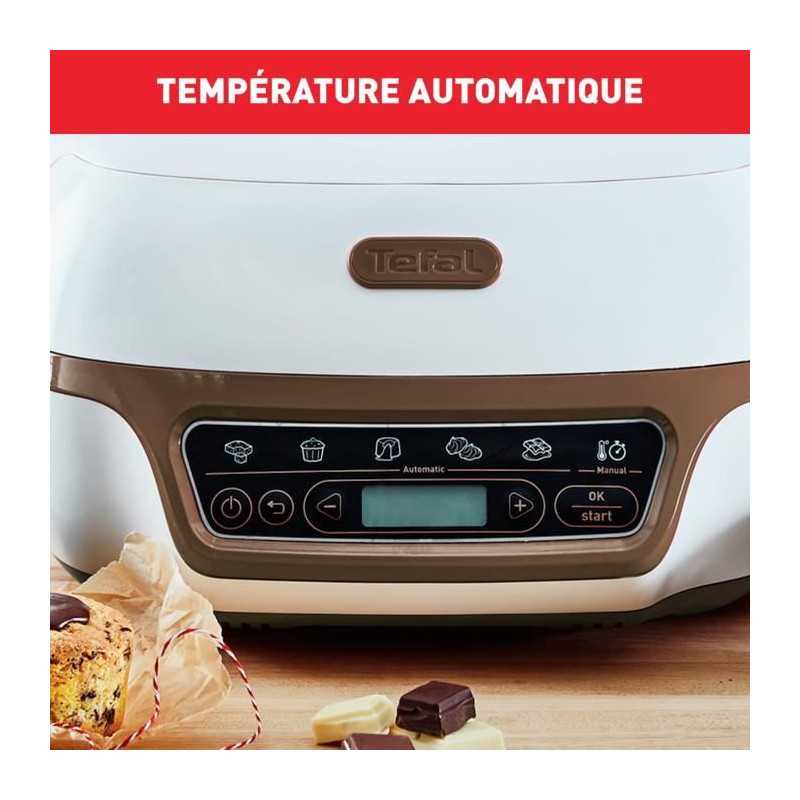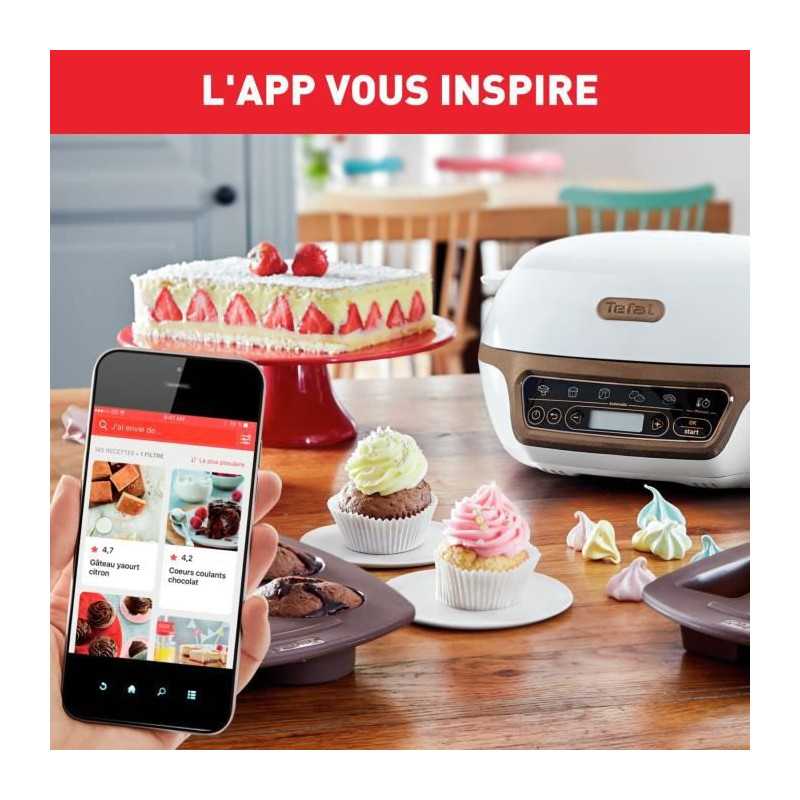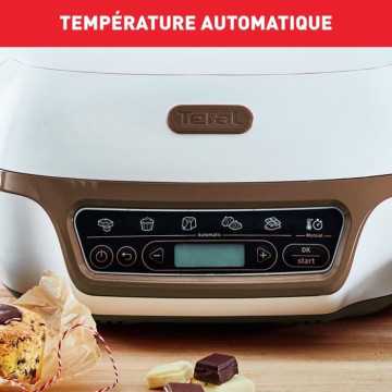 TEFAL KD802112 Cake Factory - 1100W - Résultats parfaits : 5 programmes auto: Gâteaux a partager, Gâteaux individuels, Coeurs coulants, Meringues, Fonte de chocolat - Machine a pain - Contrôle électronique de la température et du temps de cuisson - 3 moules Tefal Proflex (fonte de chocolat, 6 muffins et 6 mini cakes) ainsi qu'un plat grand gateau anti-adhésif inclus - Application mobile gratuite Cake Factory