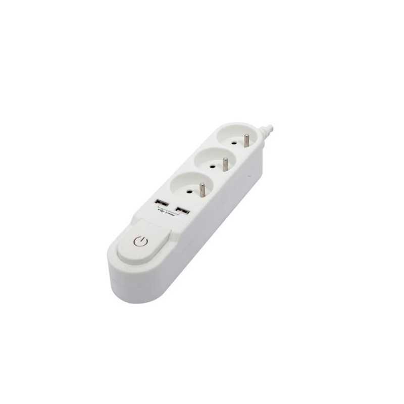 Bloc multiprise blanc - 3 prises - Câble 1,5 m - Interrupteur a pied - Max 2,1 A USB - Deux sorties USB 2A - Idéal pour recharger votre iphone, smartphone et tablette - Branchez vos différents appareils électriques sur un bloc multiprise au design élégant