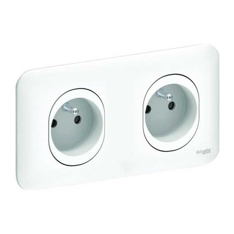 SCHNEIDER ELECTRIC Double prise de courant 2P+T pré-câblée avec éclipses Ovalis
