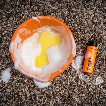 La mousse permet de nettoyer la voiture en toute simplicité. En utilisant seulement 3 bouchons dans un seau de 10 litres d'eau chaude, la mousse se forme et doit etre appliquée sur la voiture du toit vers le bas. Une fois la voiture couverte, rincez-la a l'eau claire et séchez-la avec une peau de chamois.