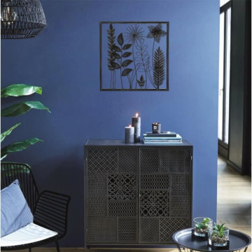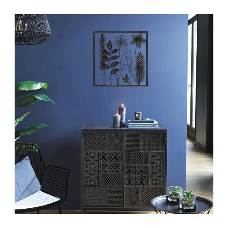 Déco murale en métal feuilles - 40 x 40 cm - Noir