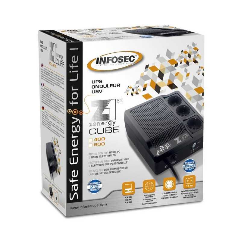 Onduleur 400 VA - INFOSEC - Z1 ZenCube EX - Haute fréquence - 3 prises FR/SCHUKO - 66072