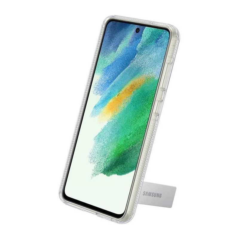 Le Clear Standing Cover G S21FE Transparent est un étui de protection conçu pour le Samsung Galaxy S21FE. Fabriqué en matériaux de qualité supérieure, il offre une protection robuste contre les rayures et les chocs. Sa conception unique en forme de stand permet à votre téléphone de rester debout et stable, ce qui vous permet d'utiliser votre téléphone à la verticale ou à l'horizontale sans avoir à le tenir. La couverture transparente offre une excellente visibilité des caractéristiques du téléphone et des couleurs, ce qui en fait un accessoire élégant et pratique pour votre appareil.