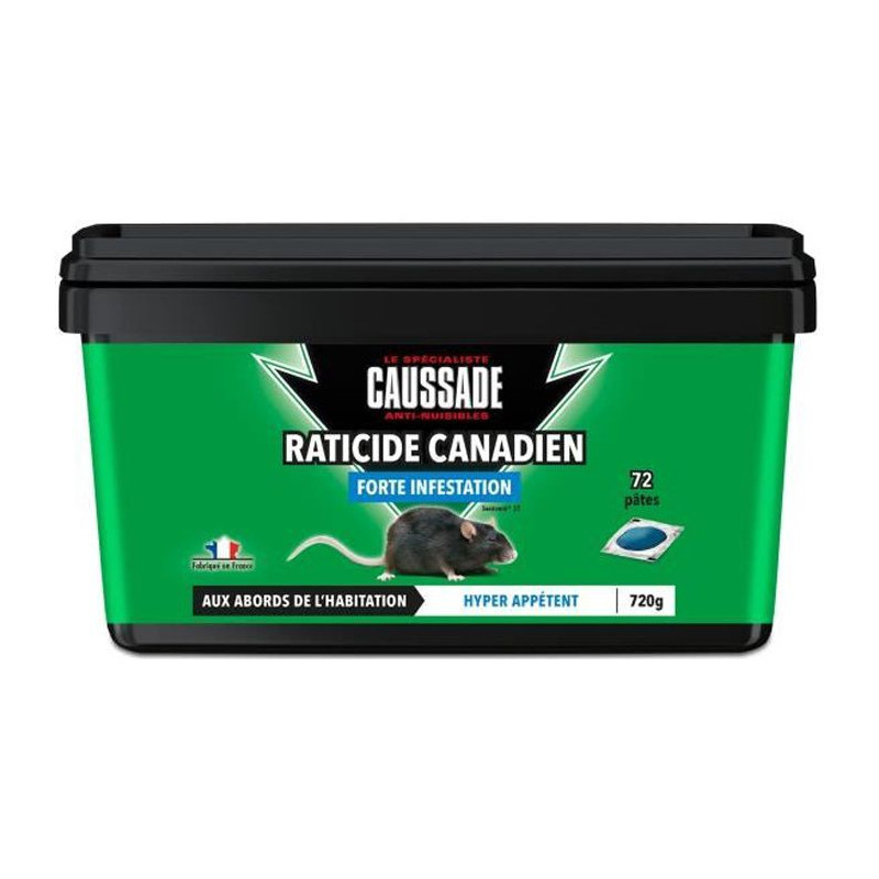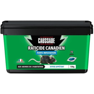 CAUSSADE CARPT720 Raticide Canadien Pat'Appat Fortes Infestations | 72 pates | Lieux Secs | Lieux Humides | Hyper Appetent