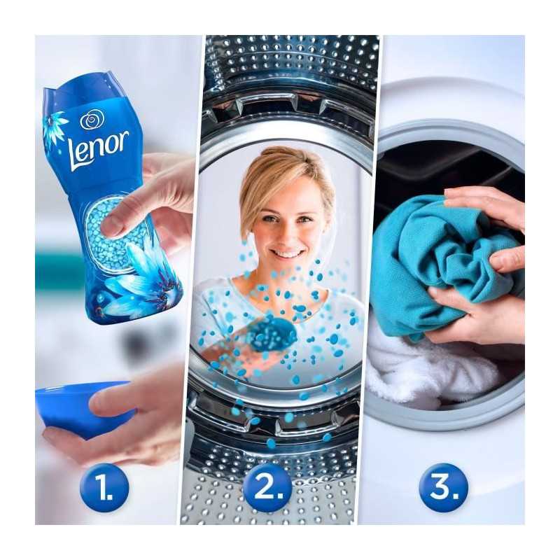 Découvrez le parfum de linge en perles Lenor, le dernier-né des expériences de bien-etre Lenor. Pour plus de fraîcheur lavage apres lavage (dans une armoire jusqu'a 12 semaines), Lenor infuse vos vetements avec sa senteur Envolée D'Air Frais.