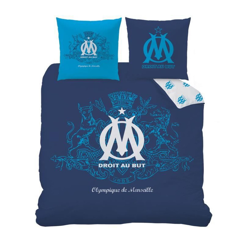 Housse de couette +2 taies d'oreiller 100% coton - olympique de marseille bleu OLYMPIQUE MARSEILLAIS La parure OM 1899 est composée d'une housse de couette et de deux taies d'oreiller (1 seule pour la taille 240x220).