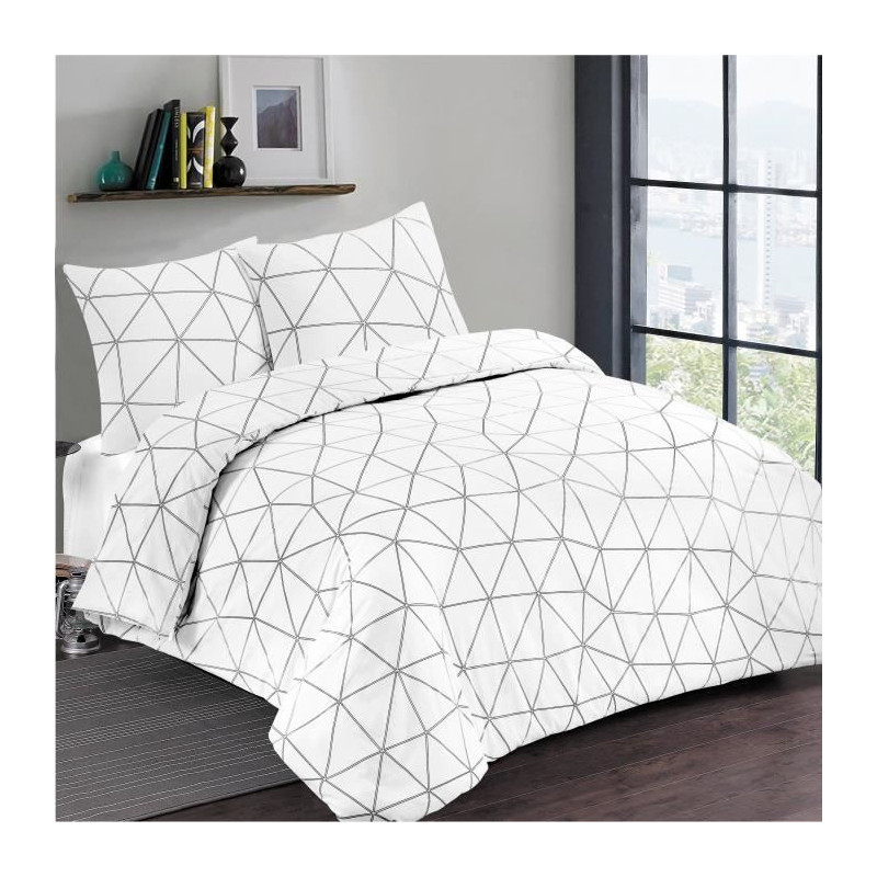 Parure de couette HUGO : 1 housse de couette 140 x 200 cm et 1 taie d'oreiller 65 x 65 cm a volant plat - 100% coton tissé serré 57 fils - Blanc - Certification : oeKOTEX - Parure a motifs fantaisie - Fermeture boutons-pression - Lavable en machine a 40°C.