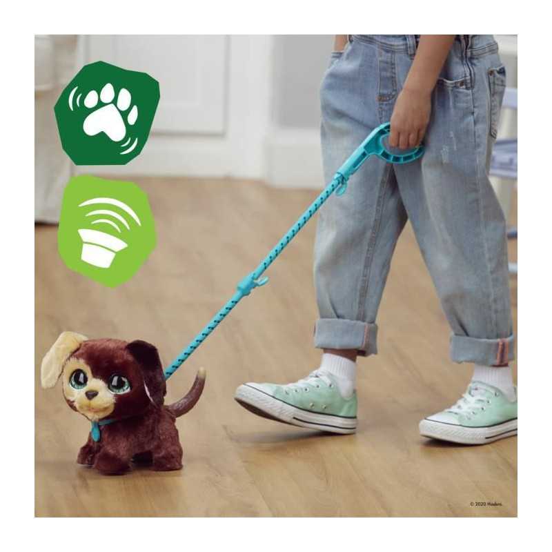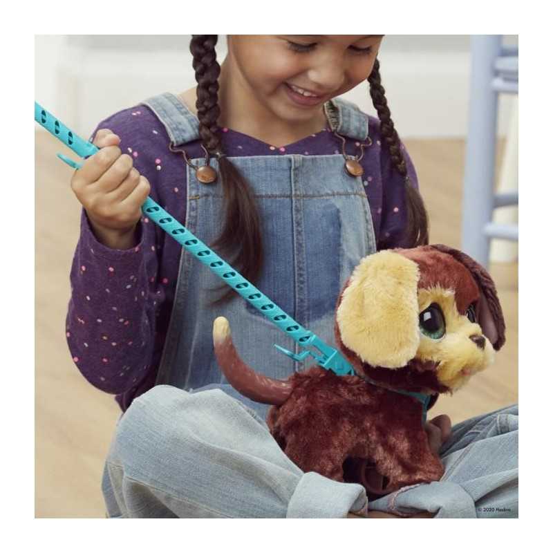 Ce chiot interactif Walkalots Grands marcheurs de furReal est vendu avec une laisse détachable en deux pieces pour le promener au sol. Il suffit de pousser l'animal a l'aide de la laisse rigide pour le faire avancer en sautillant et le voir remuer sa tete. Il émet aussi des sons et bruits rigolos, pour une expérience réaliste. Le chiot est pret pour sa promenade !