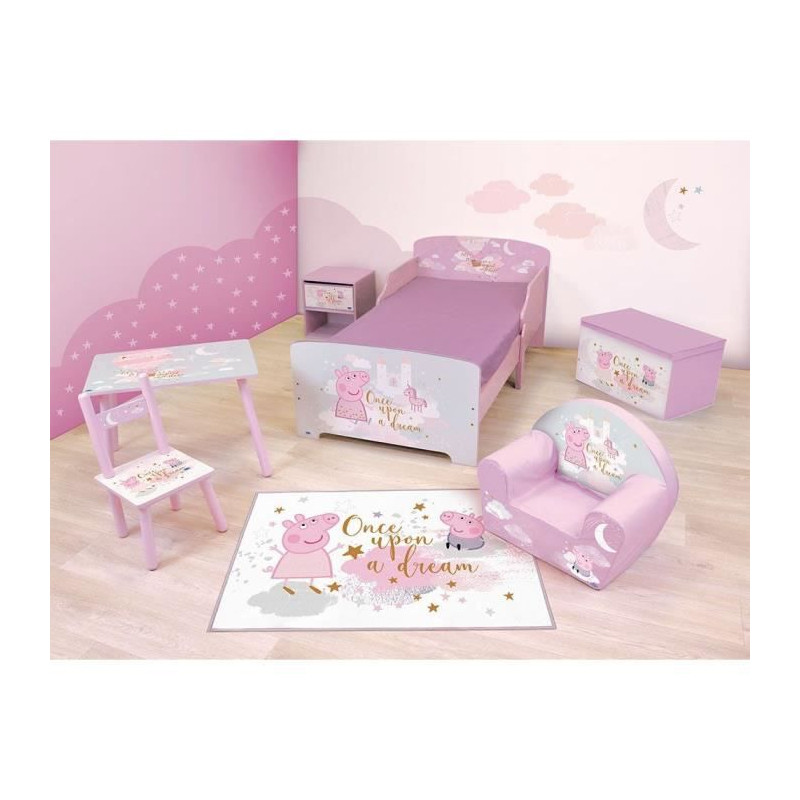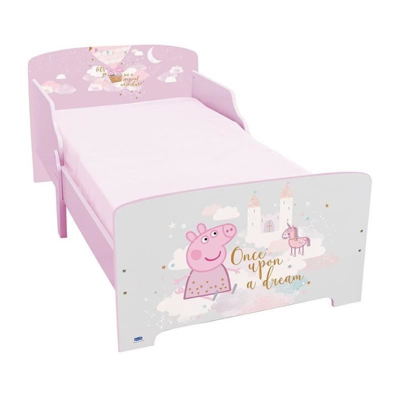 "Ce lit est idéal pour la transition en douceur du petit lit de bébé vers un lit plus grand grâce a ses dimensions adaptées 140 x 70 cm et son univers féérique!Votre petite fille prendra un réel plaisir a aller se coucher afin de retrouver son héroine préférée : PEPPA PIG !Disponible dans la meme collection FUN HOUSE PEPPA PIG : la table de nuit / bibliotheque (réf.713497), le fauteuil club en mousse (réf.