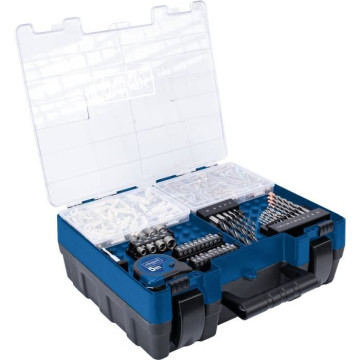 SCHEPPACH Atelier mobile DTB20PROS - 20 V - U perceuse a percussion sans fil CCD45-20ProS - LED d'éclairage de la zone de travail intégrée - Livrée avec une mallette de rangement, un ensemblede 206 accessoires, 2x batteries Li-ion de 2.0 Ah, un chargeur rapide & un clip de ceinture.