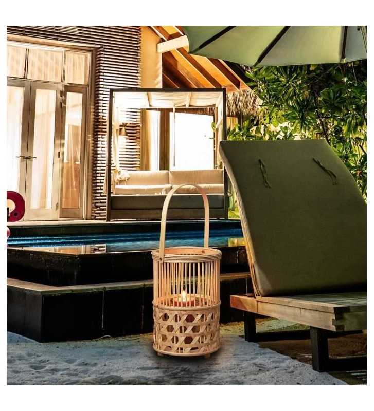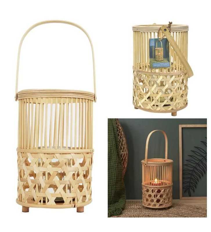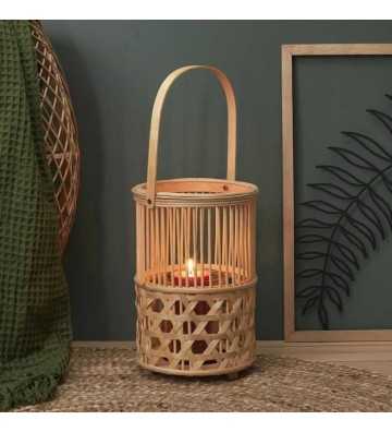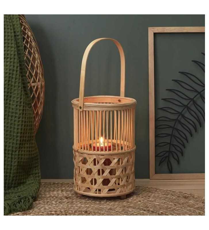 Optez pour le charme de cette lanterne en bambou et profitez de son éclairage - Dimensions : 51 x 21 x 21 cm - Composition : Bois et bambou