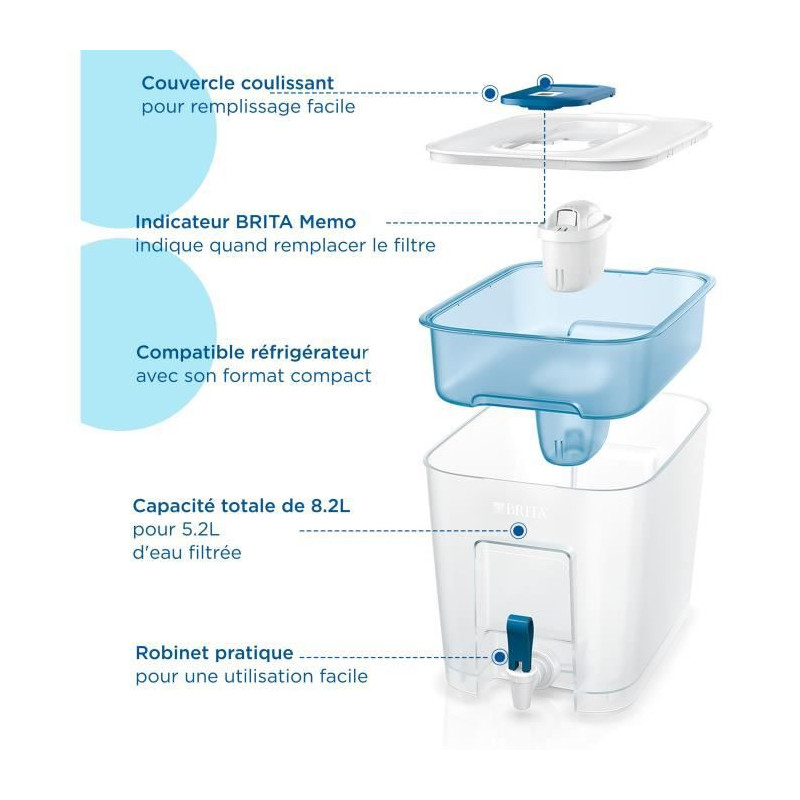 -Distributeur d'eau Flow - Capacité 8.2L (dont 5,2L d'eau filtrée) '- Inclus un nouveau filtre MAXTRA PRO ALL-IN-1 = 1 mois = 150L d'eau filtrée (+50L vs MAXTRA+)
