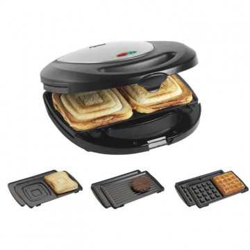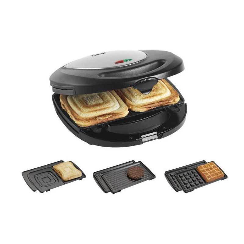 Multi-gril double 3 en 1: Croque Monsieur + Gril + Gaufrier | 760W max | en noir/inox