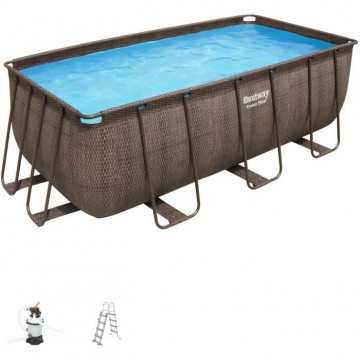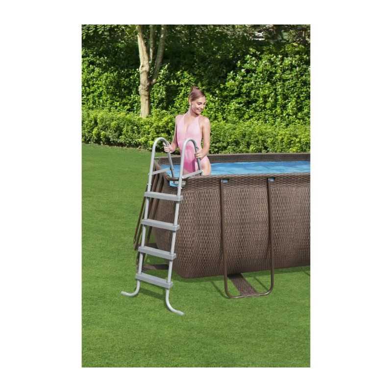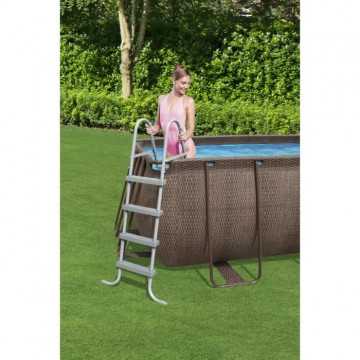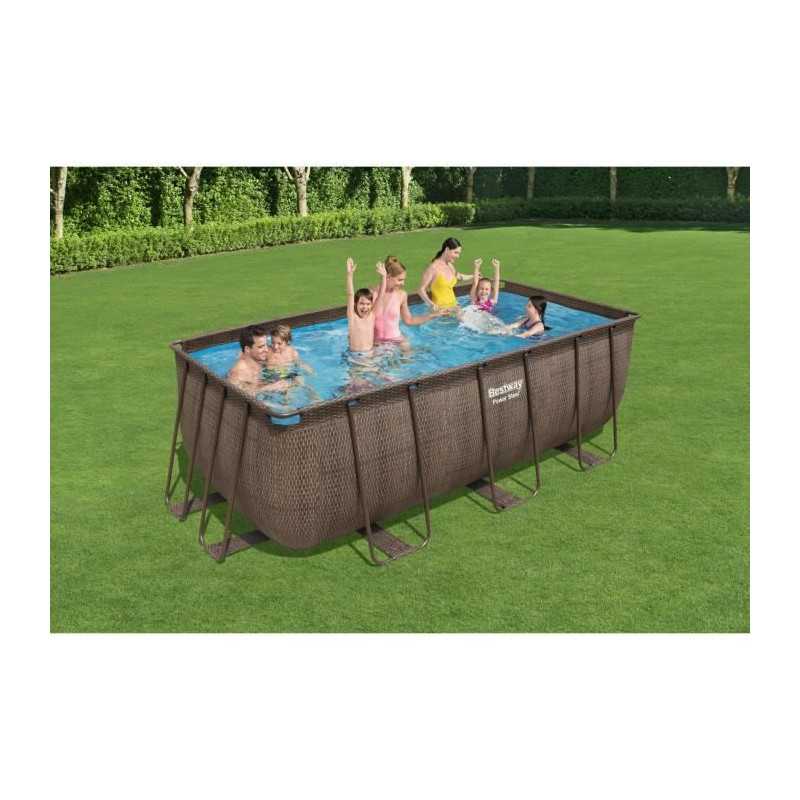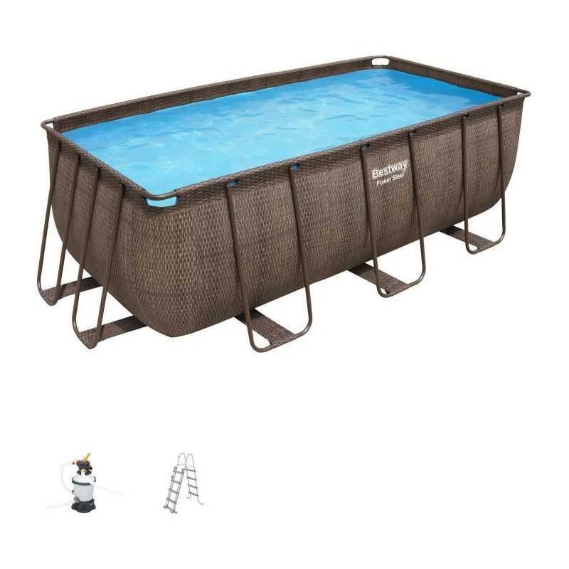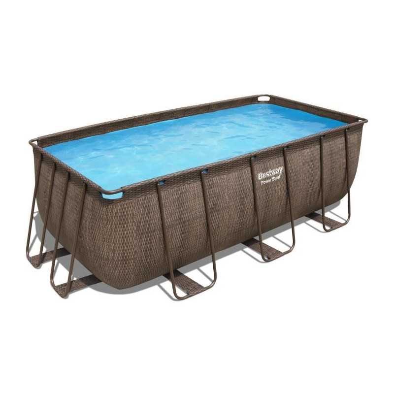Piscine hors sol rectangulaire Power Steel(TM) Longueur 412 cm largeur 201 cm hauteur 122 cm Volume d'eau a 90% : 8 124 L Filtre a sable 2,006 m3/h (58515) Sable non inclus Diffuseur Chemconnect(TM) (58501) Echelle de sécurité (58331) Montage facile sans outil Valve de vidange intégrée permettant le raccord au tuyau d'arrosage (adaptateurs inclus) Kit de réparation pouvant s'utiliser sous l'eau Le liner de cette p