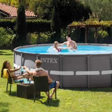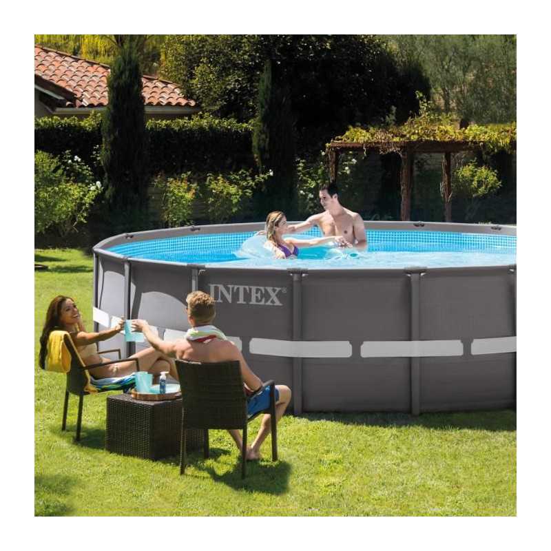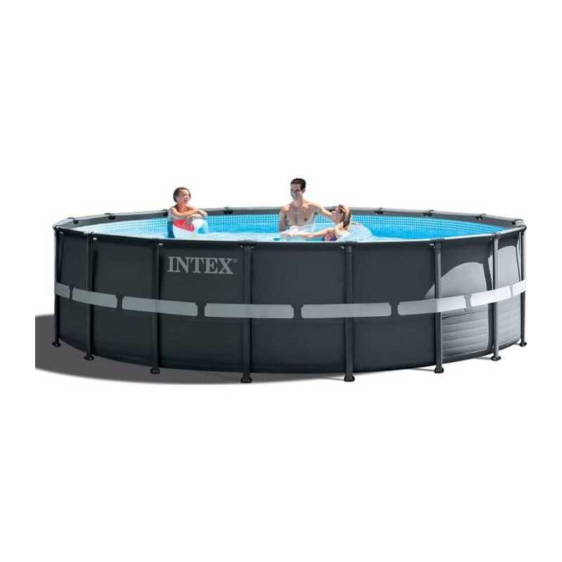 Piscine hors-sol tubulaire ronde Ultra Frame XTR de la marque Intex Ø 5,49 x H.1,32 m Livrée avec de nombreux accessoires : - 1 filtre a sable 6 m³/h adapté a votre piscine - 1 bâche pour protéger votre bassin - 1 bâche pour protéger votre bassin - 1 échelle de sécurité avec marches amovibles rendant l'acces a la piscine impossible. - Dimensions monté (Ø x H) : 549 x 132 cm.- Surface de nage (Ø x H) : 549 x 117 cm