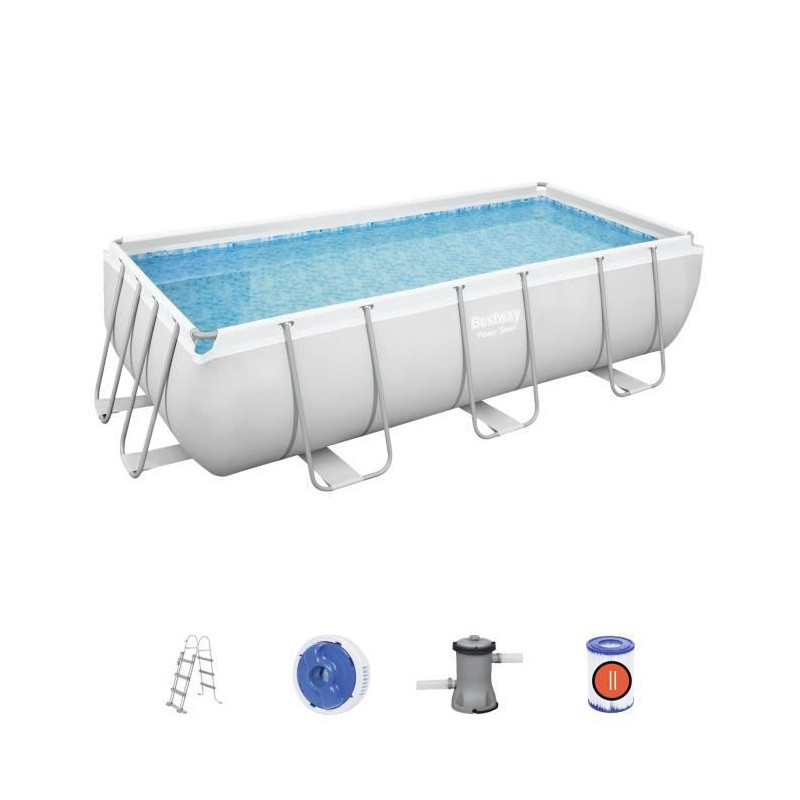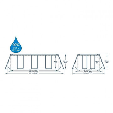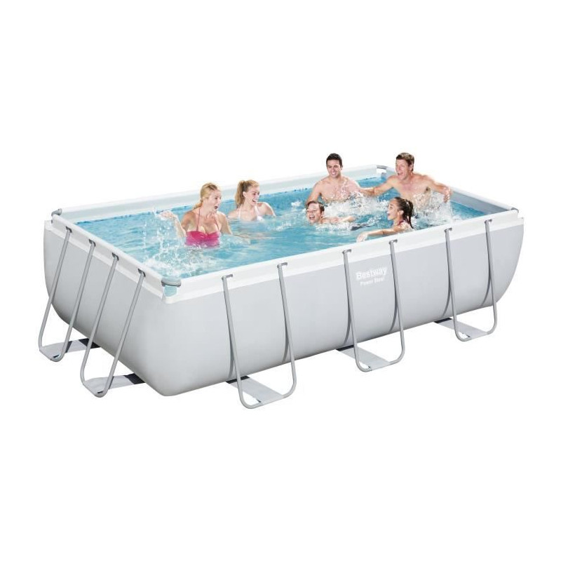 Piscine hors-sol rectangulaire conçue pour que toute la famille puisse s'amuser en plein air. Vous pouvez l'installer facilement. Ce modele de 404 x 201 x 100 cm comprend un épurateur a cartouche de 2 006 litres/h, 1 échelle et dispose d'un distributeur ChemConnect, Il peut etre vidé rapidement et a une capacité de 6 478 l.