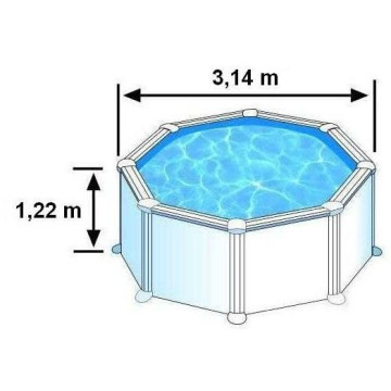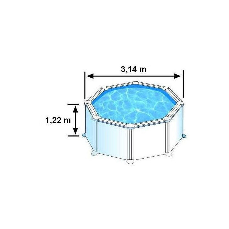 PISCINE RONDE EN ACIER BLANC Ø3,20M x H:1,22 M Dimensions intérieures: Ø3,00m x H:1,20m Dimensions extérieures: Ø3,20m x H: 1,22m Structure acier blanc 45/100º Filtration a cartouche 3,8m³/h Volume 7,41m³ Liner bleu 30/100e Echelle de sécurité 2x3 marches Garantie 4 ans sur la structure / 2 ans sur la filtration et les accessoires Les piscines hors-sol en acier blanc de la gamme Bora Bora vous permettront d'optimise