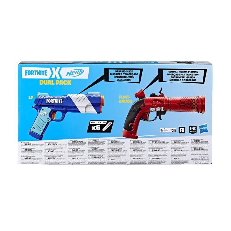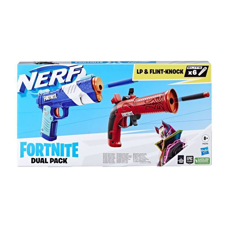 Ce Dual Pack Nerf Fortnite inclut 2 blasters Nerf Fortnite et 6 fléchettes en mousse Nerf Elite. Ce multipack spécial est parfait pour jouer a l'extérieur. Les deux blasters a fléchettes sont inspirés de l'équipement utilisé dans Fortnite et sont offerts pour la premiere fois dans ce multipack.